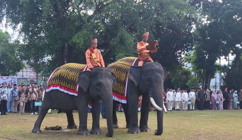 Dua Gajah Sumatera Curi Perhatian Peserta Upacara HUT ke-80 RI di Halaman BBKSDA Riau