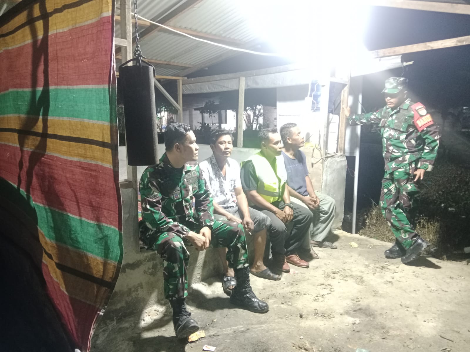 Dua Anggota Koramil 02/TP dan Bhabinkamtibmas Patroli Siskamling di Wilayah Sintong